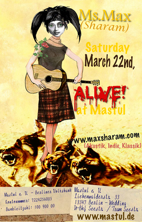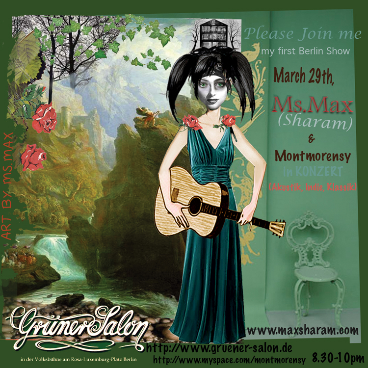 Studied classical singing and the electronic organ. While graduating from Performing Arts College, majoring in Behavioural Science, Max brought her guitar to Europe, where she sang, wrote and performed her own compositions in clubs throughout. She also teamed up with a group of Madonnaro artists and traversed France, Switzerland and Italy, painting and singing on the streets.